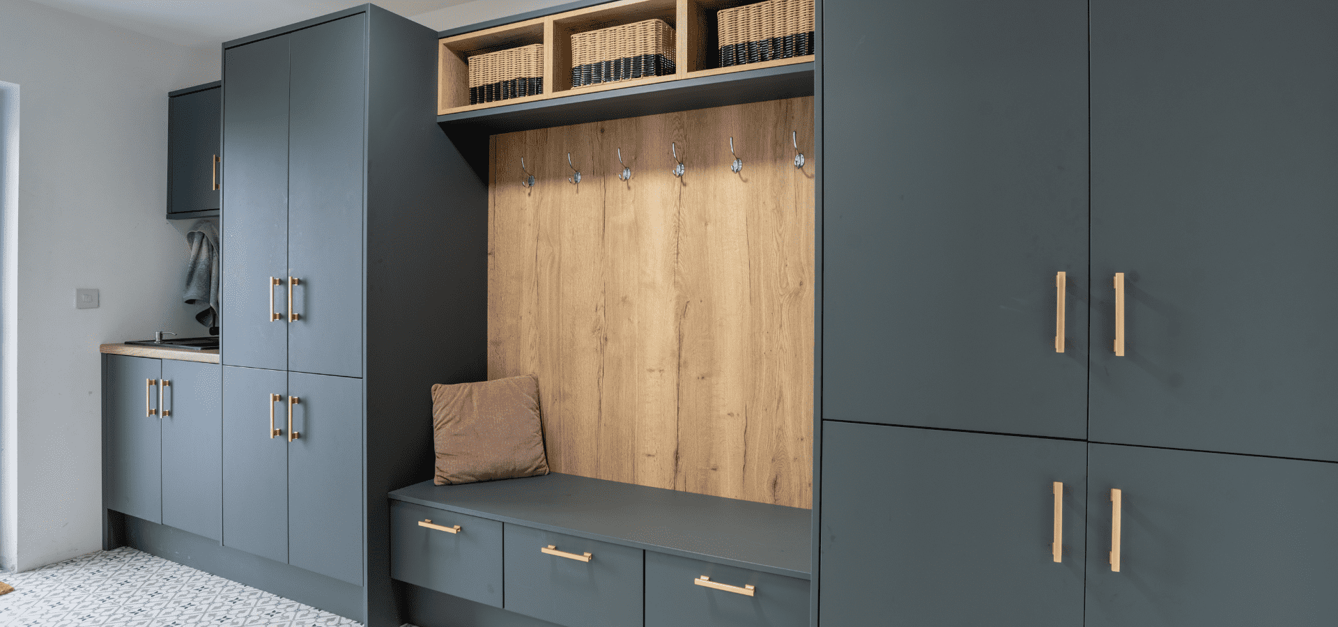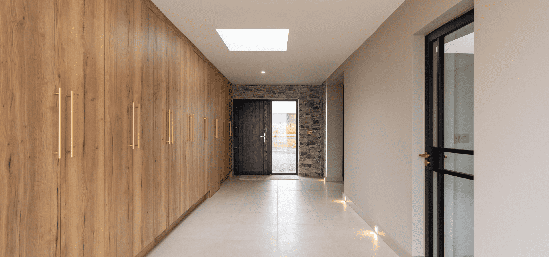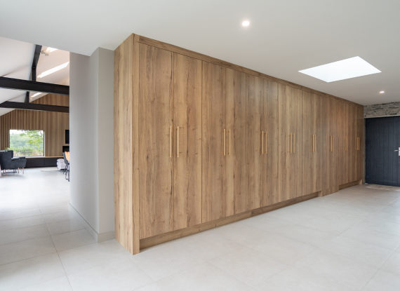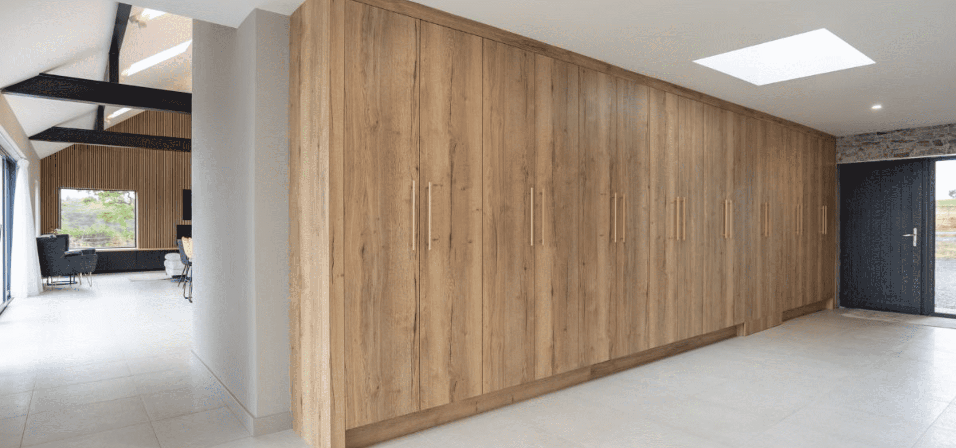 From the moment you enter, a wall of Halifax Oak cabinetry draws you through the space, setting the tone for what follows. This continues into the kitchen and open-plan living area, where matt black and oak are carried consistently, creating a home that feels unified and seamlessly connected.